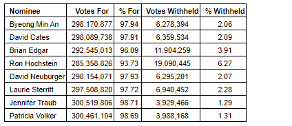 Detailed results of the vote by proxy for the election of directors are set out in the attached table.