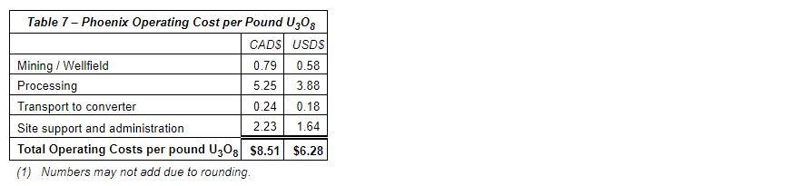 ($6.28 (U.S.)) per pound U3O8 produced remain highly competitive amongst the lowest-cost uranium mining operations globally. Operating costs during the first five years of production are expected to be $6.64