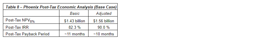 Base case pretax net present value (8-per-cent discount) of $2.34-billion (100-per-cent ownership basis) is a 150-per-cent increase in the base-case pretax NPV (8-per-cent discount) for Phoenix from the 2018 PFS.