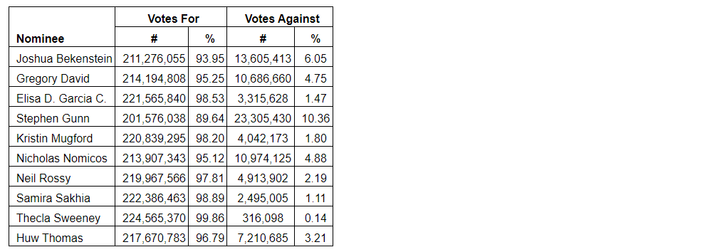 The nominees listed in Dollarama Inc.'s management proxy circular dated April 11, 2023, were elected as directors of Dollarama at the annual meeting of shareholders held earlier today. The detailed results of the vote for the election of directors are set out in an attached table.