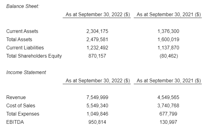 The attached table sets out historical financial information of Urban, in each case, for the periods ended and as of the dates indicated. The selected financial information of Urban has been derived from the unaudited financial statements of Urban for the year ended Sept. 30, 2022, and 2021.