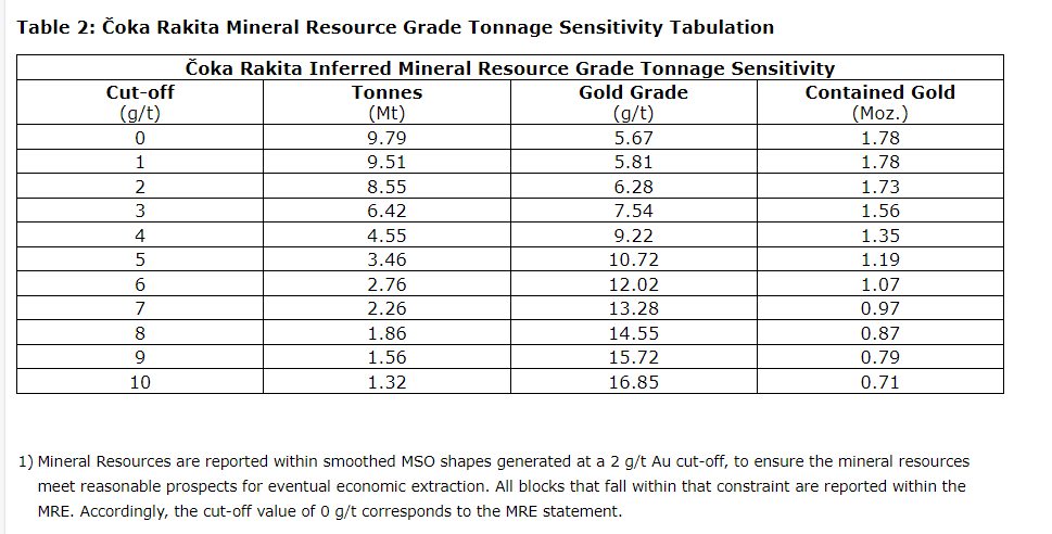 A technical report for the Coka Rakita gold project, prepared in accordance with NI 43-101, will be filed under the company's profile on SEDAR+ within 45 days of this news release. Readers are encouraged to read the technical report in its entirety, including all qualifications, assumptions, exclusions and risks that relate to the mineral resource.
