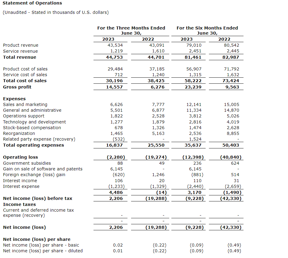 Total revenue for the second quarter of 2023 increased by approximately $8.0-million, or 22 per cent from the first quarter of 2023. The company expects a sequential increase in revenue in the third quarter of 2023 over the second quarter of 2023, though not to the same extent.