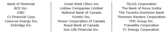 The company invests in a portfolio of 15 Canadian companies selected from the 20-company universe named in the attached table, which are among the highest-Canadian-dividend-yielding stocks.