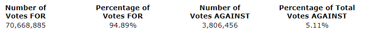 On a vote by ballot, the say-on-pay resolution proposed by management of the corporation was approved.