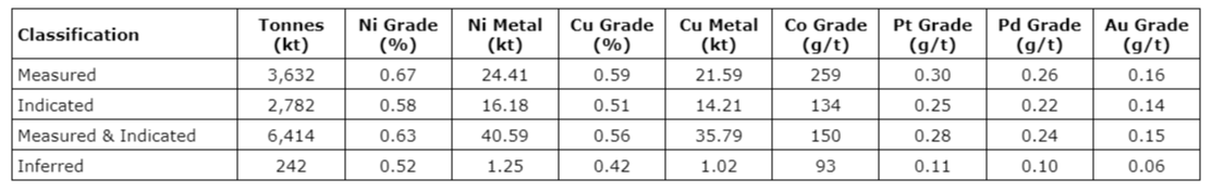 Based on a nickel price of US$10.00/lb, the following table summarizes the Historical MRE for underground resources at the Aguablanca Project at a cutoff grade of 0.30% Ni: