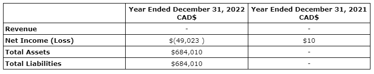 An attached table shows a summary of certain financial information of EAC for the financial years ended Dec. 31, 2022, and Dec. 31, 2021, presented in Canadian dollars. All information contained herein is unaudited and prepared on an unconsolidated basis.