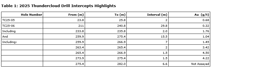 DYNASTY GOLD REPORTS ADDITIONAL 2025 DRILL RESULTS AT THUNDERCLOUD
