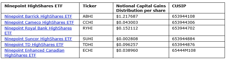 NINEPOINT PARTNERS ANNOUNCES FINAL 2025 ANNUAL NOTIONAL CAPITAL GAINS DISTRIBUTIONS FOR ITS HIGHSHARES ETF SECURITIES