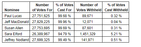 ECOSYNTHETIX ANNOUNCES VOTING RESULTS FOR ELECTION OF DIRECTORS
