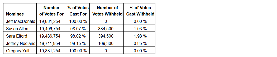 Paul Lucas retired and did not stand for re-election to the board of directors after serving 10 years on the board, including the past nine years as chair of the board. The company recruited Gregory Yull, former president, chief executive officer and director of Intertape Polymer Group, as a new member of the board. Subsequent to the annual meeting, the board met and appointed Jeffrey Nodland as chair.