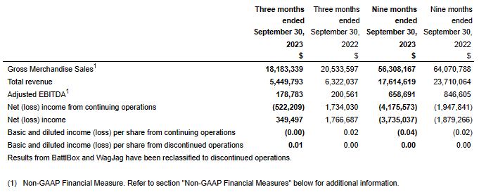"Considering the seasonal nature of Q3 for some of our key businesses, and the ongoing macro climate, we're pleased to have delivered another quarter of positive Adjusted EBITDA. Q3 also marks our third consecutive quarter with gross margin exceeding 50%, reflecting the team's numerous gross margin enhancement initiatives. Our revenue in Q3 2023 was down vs. Q3 2022 in part due to the unprofitable US operations and trading divisions eliminated in late 2022, in addition to what we view as more normalized post-pandemic revenue levels reflected lately. Most of our key businesses remain substantially higher than pre-pandemic (2019) levels, and we are seeing strong sales momentum lately across numerous brands, especially during the Black Friday shopping period," commented Ghassan Halazon, Founder and CEO, EMERGE.
