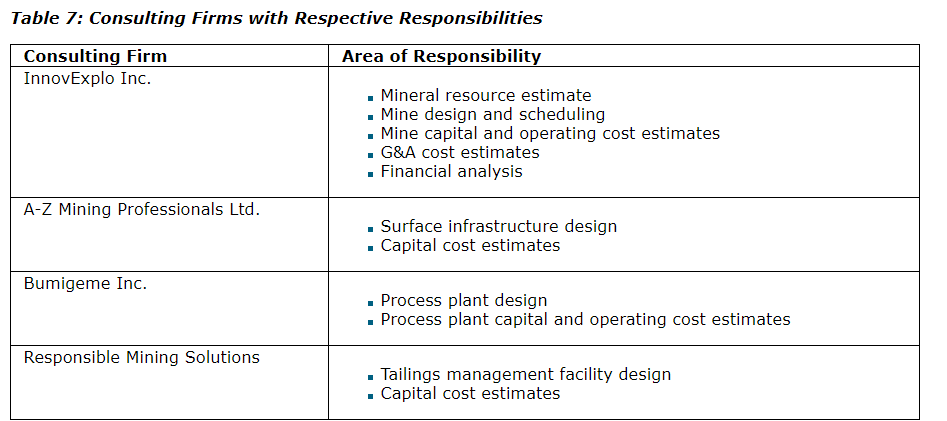 The qualified persons independent of the issuer, responsible for the preliminary economic assessment (this press release), within the meaning of NI 43-101, are Mr. Beauvais, PEng, of InnovExplo, Florent Baril of Bumigeme and Eric Sellars, PEng, of Responsible Mining Solutions. Mr. Beauvais, Mr. Baril and Mr. Sellars declare that they have read this press release and that the scientific and technical information relating to the resource estimate presented therein is correct.
