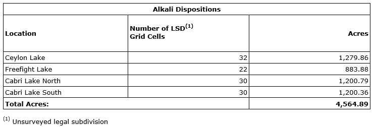 EDISON LITHIUM TO ACQUIRE ALKALI DISPOSITIONS IN SASKATCHEWAN