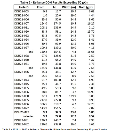 - 6.56 g/t gold over 2.5 m.