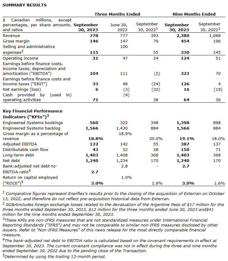 Enerflex Ltd. has released its financial and operational results for the three and nine months ended Sept. 30, 2023.