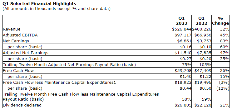 Exchange Income Corp. has released its financial results for the three months ending March 31, 2023. All amounts are in Canadian currency.