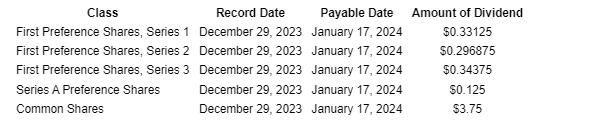 E-L Financial advises that the referenced dividends are eligible dividends for the purposes of the Income Tax Act, Canada, and any similar provincial tax legislation.