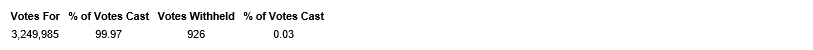 By a vote conducted by poll, PricewaterhouseCoopers LLP was reappointed as the auditor of the company and the board of directors was authorized to fix its remuneration. The specific voting results are provided in the attached table.