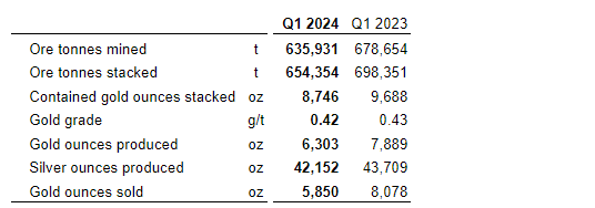 - The company sold 5,850 ounces of gold during Q1 2024.