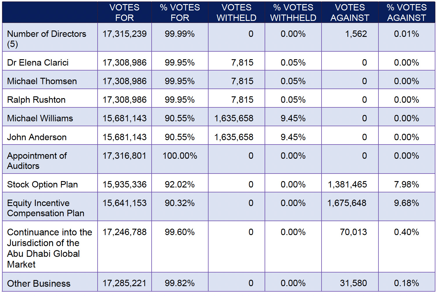 Shareholders of the company also approved a special resolution to continue the corporate jurisdiction of the company from British Columbia into the jurisdiction of the Abu Dhabi Global Market and, subject to and upon the continuance, the proposal to adopt the new articles of continuance as detailed in the management information circular of the company dated June 6, 2025.