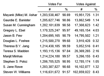 Enbridge Inc. held its annual meeting of shareholders on May 7, 2025. On a vote during the regular business proceedings at the meeting, shareholders approved the election of all 12 nominated directors proposed by management as listed in the company's management information circular dated March 4, 2025.
