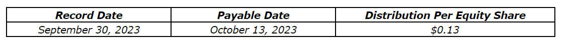 E Split will also pay a third quarter 2023 distribution to preferred shareholders (see an attached table).