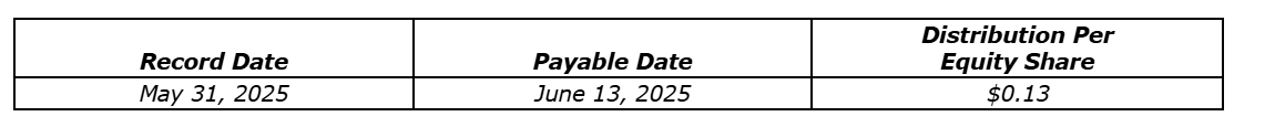 E Split Corp. will pay a distribution for May, 2025, to Class A shareholders (see an attached table).