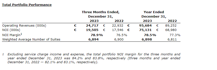 Operating revenues increased by 7.8 per cent and 7.2 per cent for the three months and year ended Dec. 31, 2023, respectively, compared with the same periods last year, primarily due to increase in monthly rents on the same property portfolio.