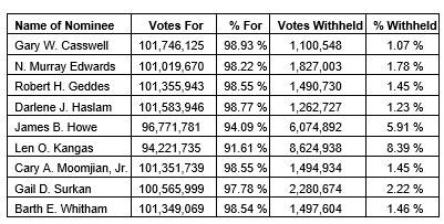 All other matters put before the meeting passed, including the non-binding advisory vote on the corporation's approach to executive compensation.