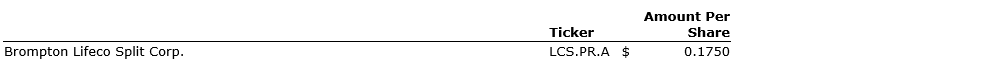 Brompton Funds has also declared distributions, payable on Feb. 13, 2026, to preferred shareholders of record at the close of business on Jan. 30, 2026, for Brompton Lifeco Split Corp., as detailed in the associated table.