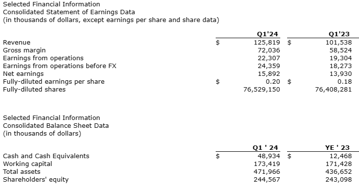 For the quarter ended July 31, 2023, gross margin was $72.0-million as compared with $58.5-million in the same quarter last year. Gross margin percentage was approximately 57.3 per cent as compared with 57.6 per cent in the quarter ended July 31, 2022.