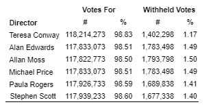 Shareholders approved setting the number of directors at six.