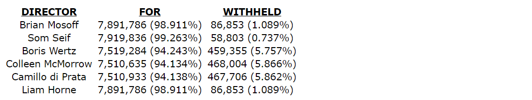 The results of these matters considered at the meeting are reported in the report of voting results, as filed on SEDAR on June 21, 2023.