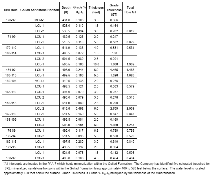 There are currently six (6) drill rigs in full operation at the Alta Mesa CPP and Wellfield, with contracts pending for three (3) additional rigs. The wellfield drilling operations, delineating the roll front mineralization within PAA-7, which commenced in March 2023, are advancing rapidly with 92 holes drilled since the previous update (