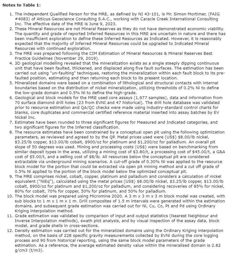 A technical report in support of the MRE will be filed on SEDAR within 45 days of the date of this news release. The MRE is effective as of June 9, 2023.