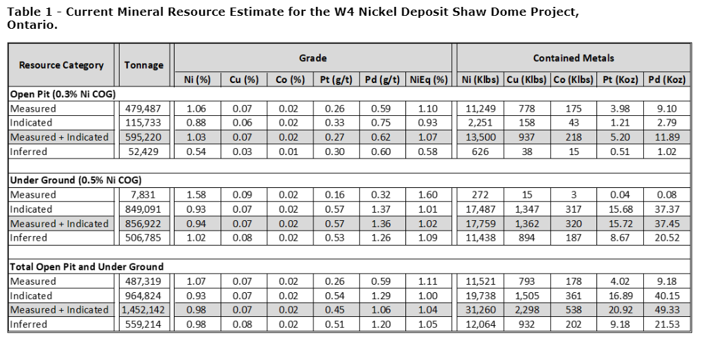 "More than doubling the size of the 2010 historical resource for the W4 deposit confirms that it has the grade and the size to be considered a near-term source of nickel production," said Paul Davis, vice-president, exploration. "The significant expansion of the W4 resource remains open at depth and along plunge and the company interprets that the W4 deposit has further room to grow. The Shaw Dome represents one of the best places in the world to be exploring for nickel and EVNi has an incredible property position with more known high-grade mineralization plus large-scale targets."