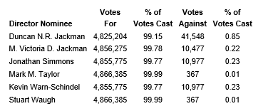 Economic Investment Trust Ltd. has released the voting results for the election of directors at its annual meeting of shareholders held on April 29, 2024.