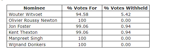 Shareholders voted 99.8 per cent in favour of the ratification and approval of the appointment of McGovern Hurley LLP, the company's auditor, with 0.20 per cent of shareholders withholding their vote on the appointment of auditor.