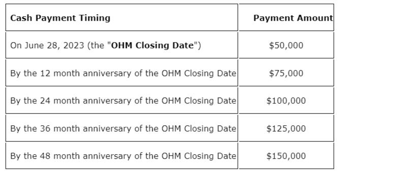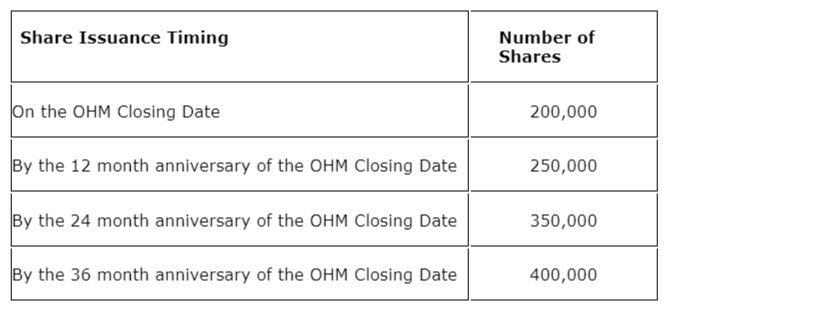 Terms of the OHM agreement