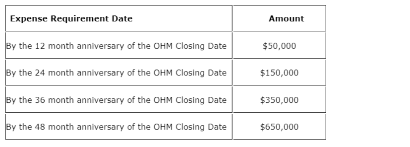 - Fabled must also incur cumulative exploration expenses on the OHM property by the dates shown in the associated table.