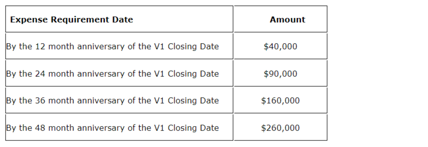 - Fabled must also incur cumulative exploration expenses on the Volt 1 property by the dates shown in the associated table.