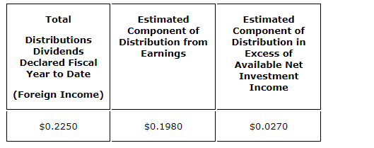 The company's estimated sources of the current fiscal year to date distributions is as shown in the attached table.