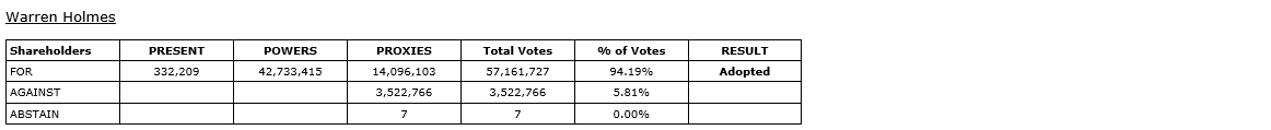 In addition, the meeting voted 99.91 per cent in favour of the company declaring a nil dividend for the 2025 fiscal year.
