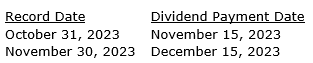 FIRM CAPITAL MORTGAGE INVESTMENT CORPORATION ANNOUNCES Q2/2023 RESULTS, AS WELL AS THE DECLARATION OF OCTOBER, AND NOVEMBER MONTHLY CASH DIVIDENDS