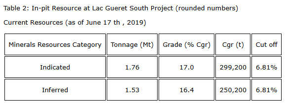 The mineral resource estimates above are described in the technical report on the Lac Gueret South graphite property in Quebec, Canada, with an effective date of June 30, 2019, by Edward Lyons, PGeo, Florent Baril, Ing, and Claude Duplessis, Ing.