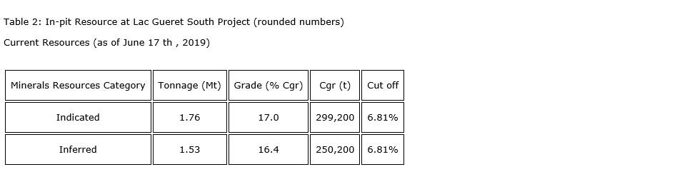 The mineral resource estimates above are described in the technical report entitled, "NI 43-101 Technical Report Mineral Resource Estimate on the Lac Gueret South Graphite Property, Quebec, Canada." With an effective date of June 30, 2019, by Edward Lyons, PGeo, Florent Baril, Ing, and Claude Duplessis, Ing.