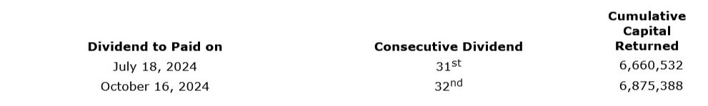 After giving effect of the above-mentioned dividend, it brings the cumulative capital returned to shareholders via dividends since December 2016 to