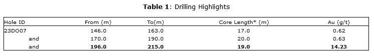 Drilling and drill composite data associated with these results and all previous 2023/2024 drilling will be available on the Company's website on Friday, March 1st.