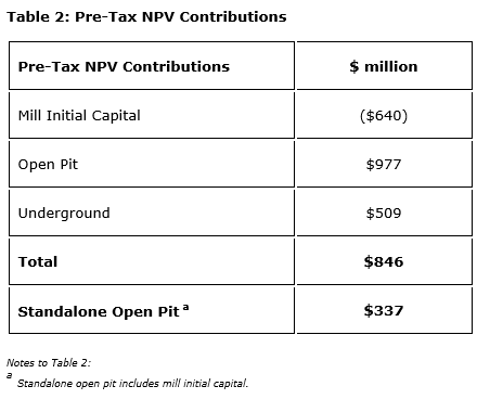 - Strong stand-alone open-pit economics: stand-alone open-pit operation supports a pretax NPV (7 per cent) of $337-million;